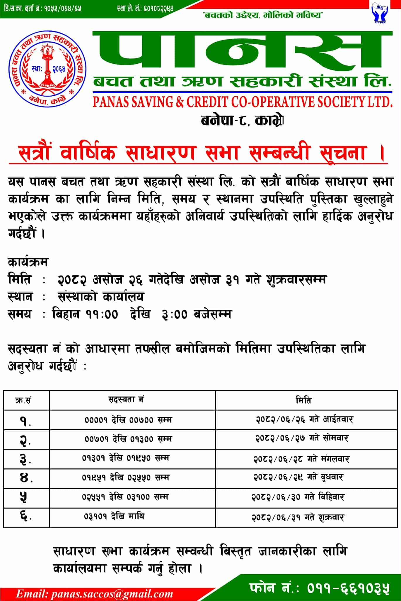This Panas Savings and Credit Cooperative Society Limited has arrang ...
