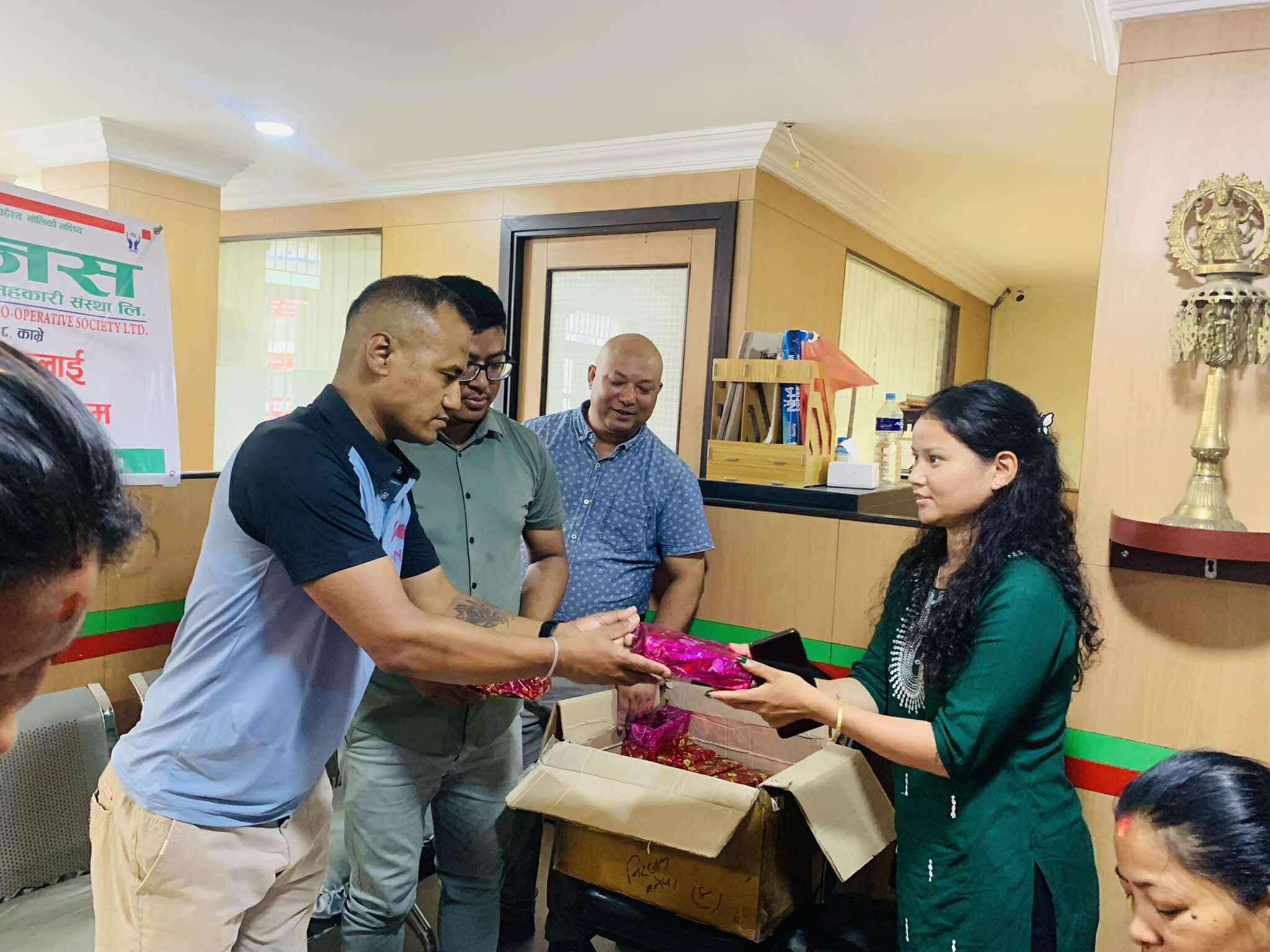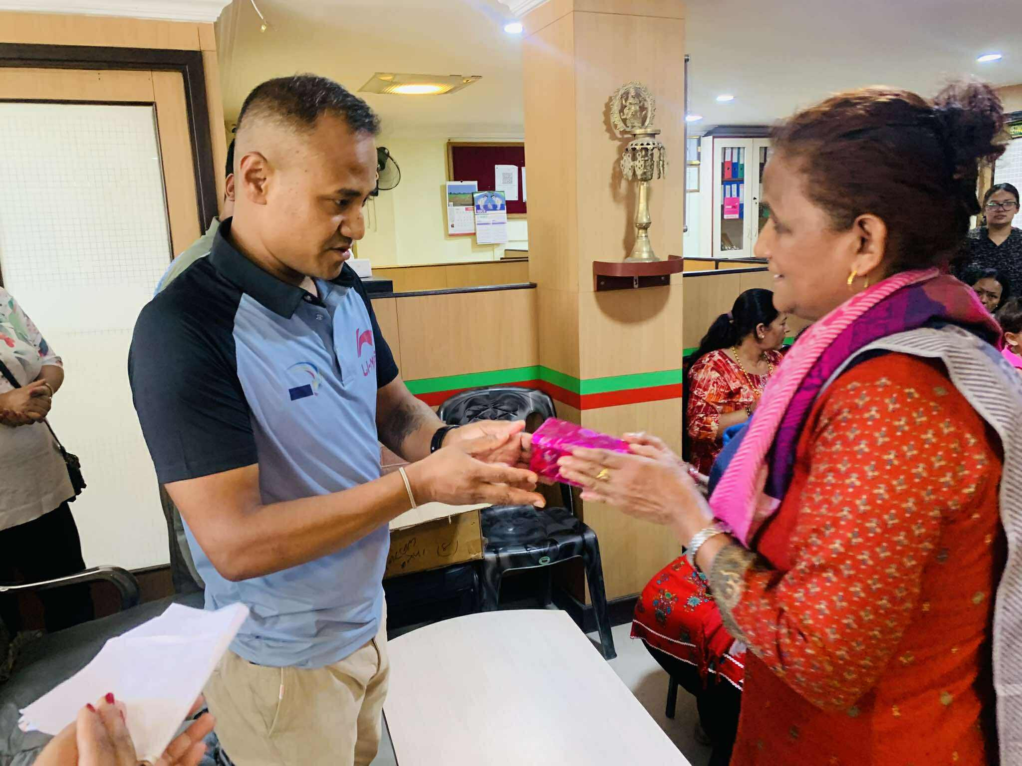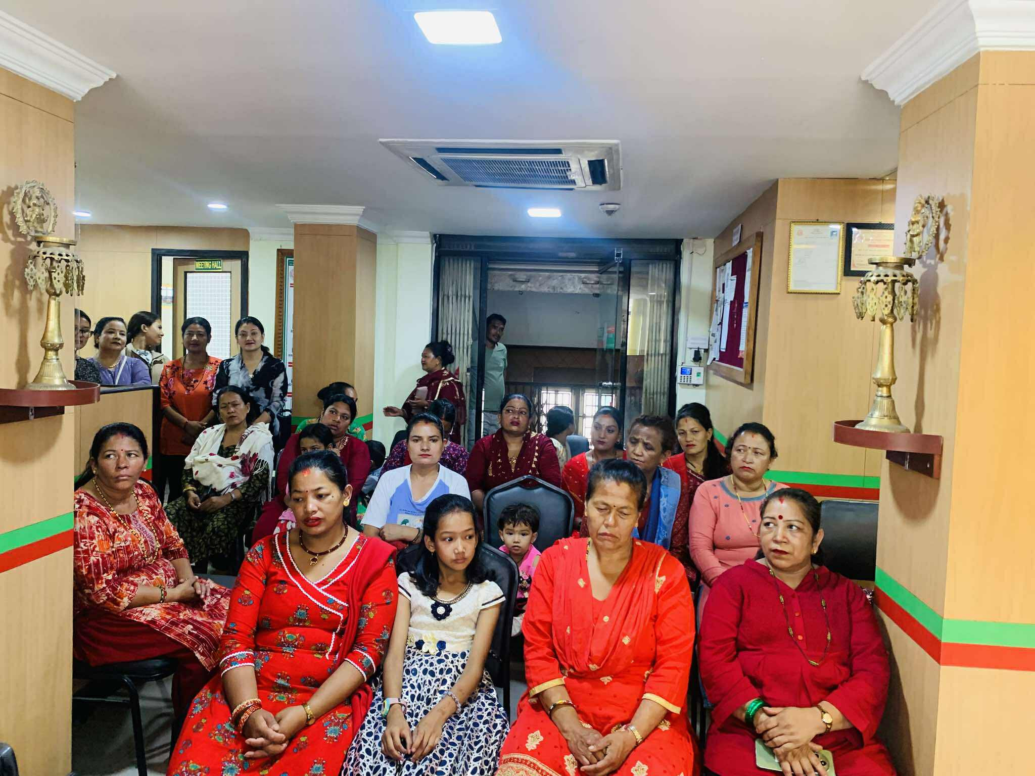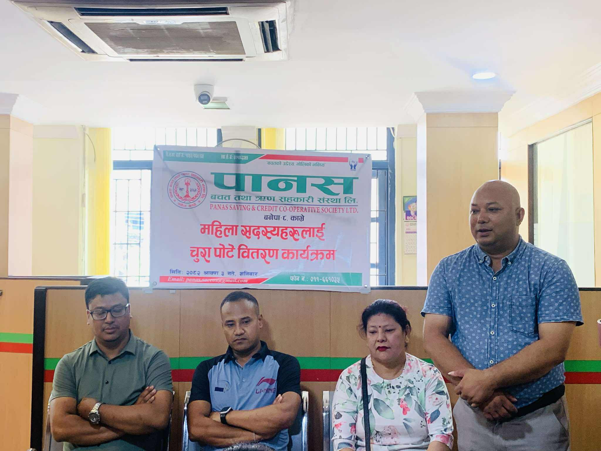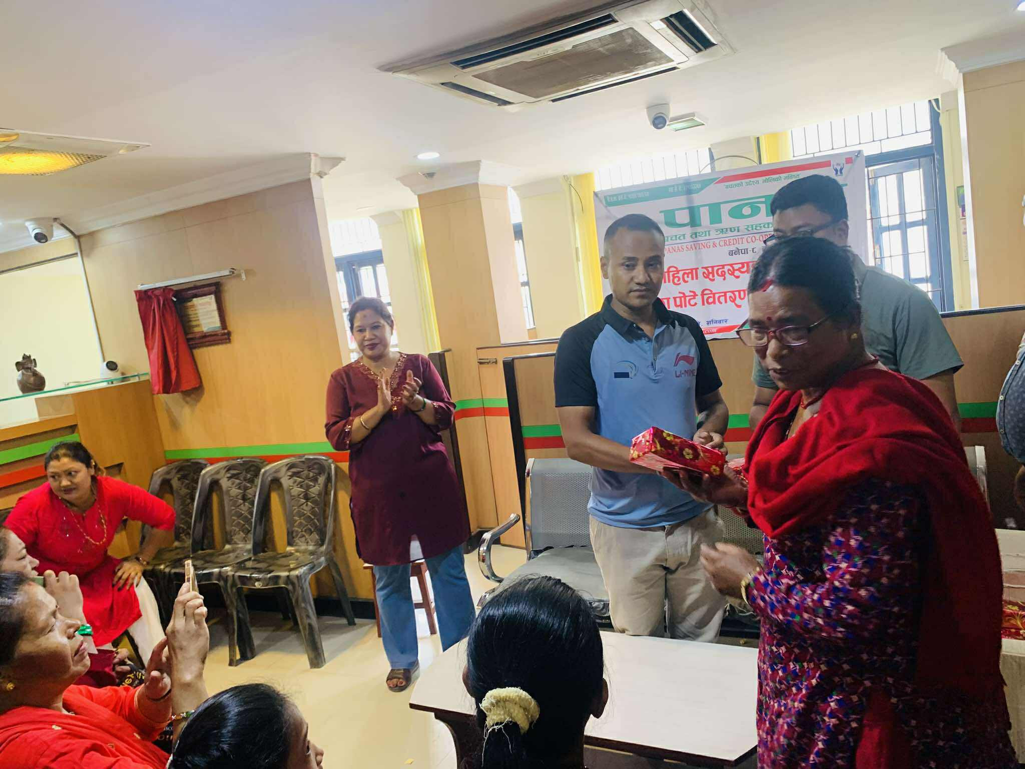 Glimpses of the program in which green bangles, potes and mehendi were distributed to women members under Nari bachat for the month of Shravan 2082.