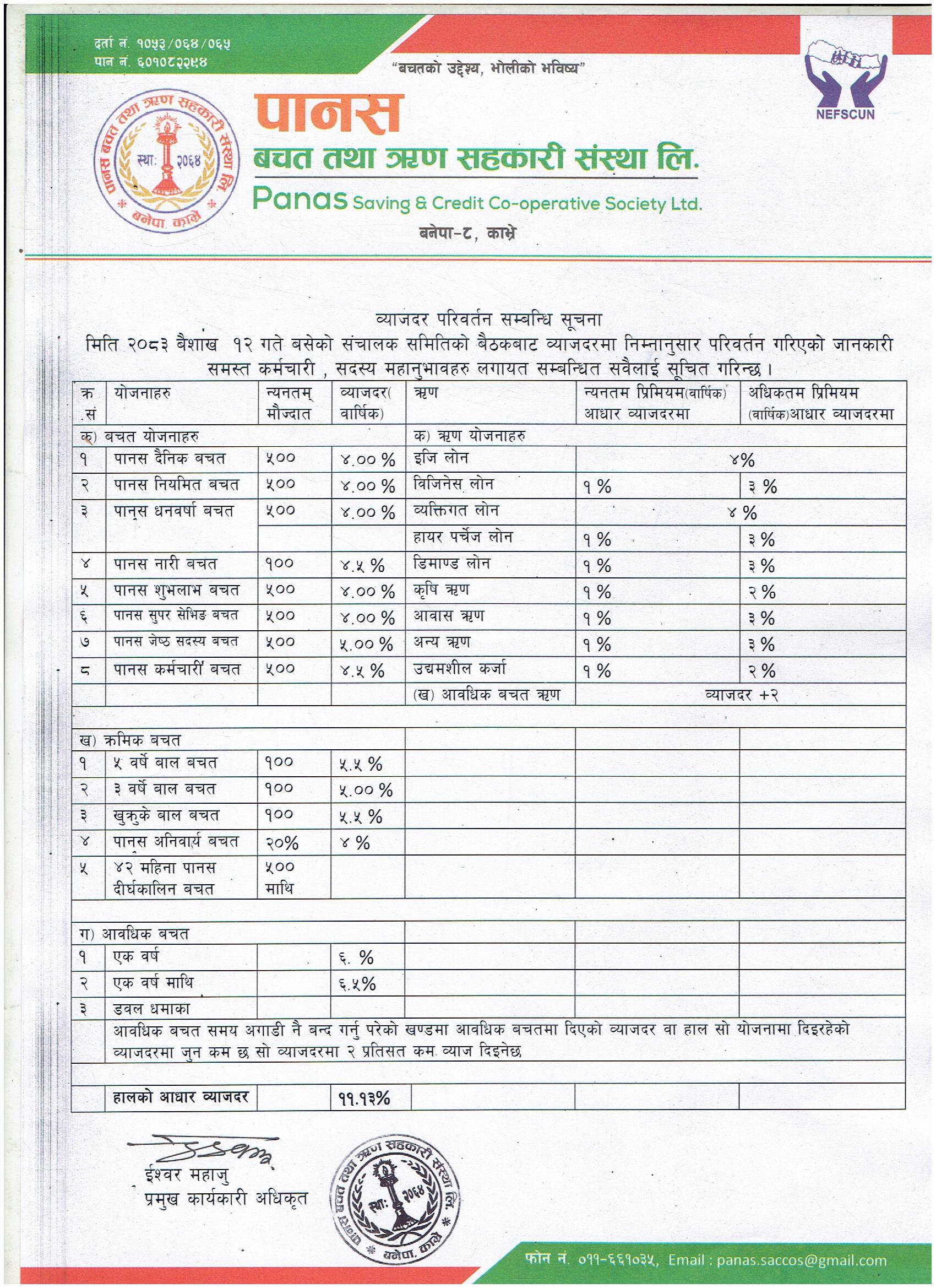 Panas Savings and Credit Cooperative Society established in B.S. 2064, was established with the aim of making the community members prosperous and independent by converting the capital scattered in the community...